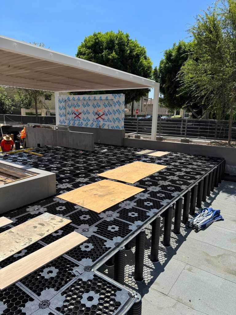 In the heart of the global film industry, in Los Angeles (CA), architectural challenges met Profilitec's technical innovation. Near Warner Bros Studios, a raised floor was created using an innovative combination of SUPAANG joists and SUPATRAY safety grating from the UPTEC system.