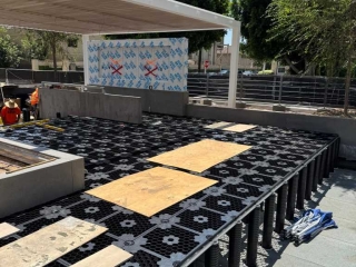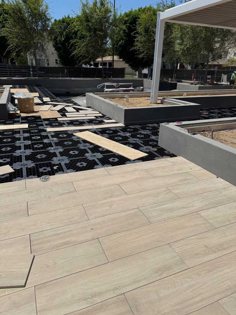 The project involved laying 30x120 cm ceramic tiles (20 mm thick) on a structure that had to compensate for a final height of approximately 90 cm. At such heights, structural stability and safety become essential to ensure flooring that can withstand heavy foot traffic.